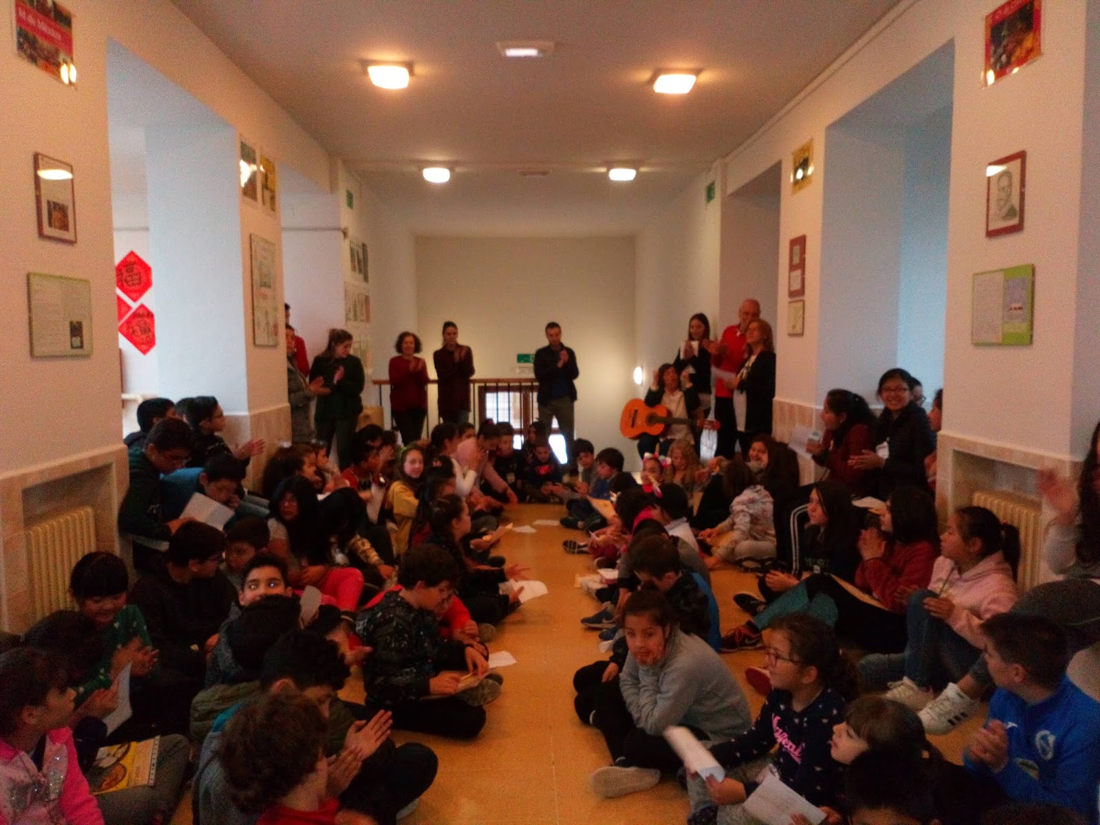 Terminamos este acto cantando, como nos gusta hacer siempre que finalizamos momentos entrañables en nuestro convivir diario. Al son de la guitarra del San José, de la «seño» Aurora.