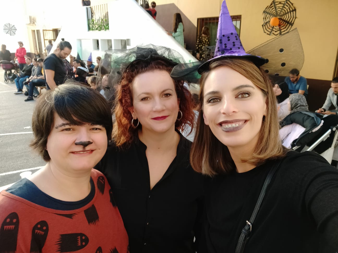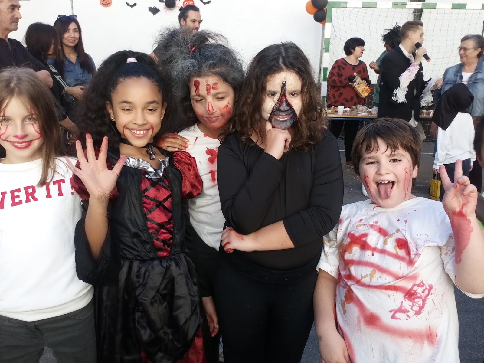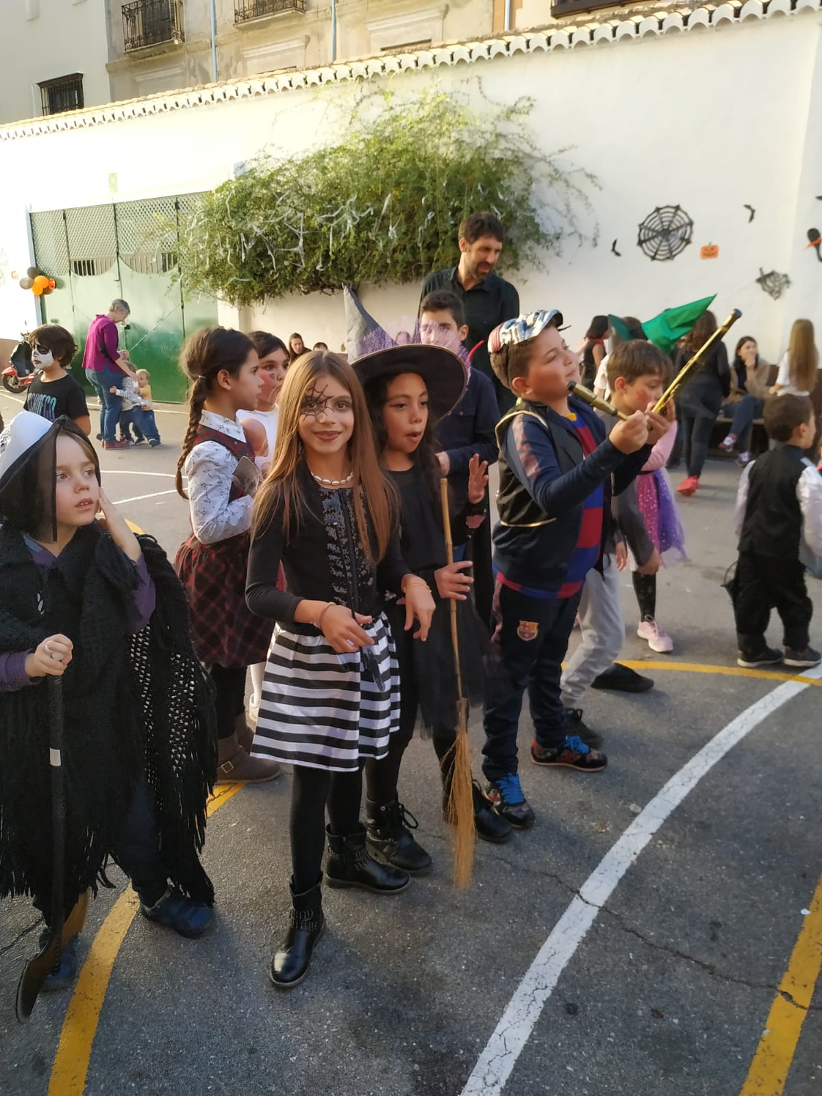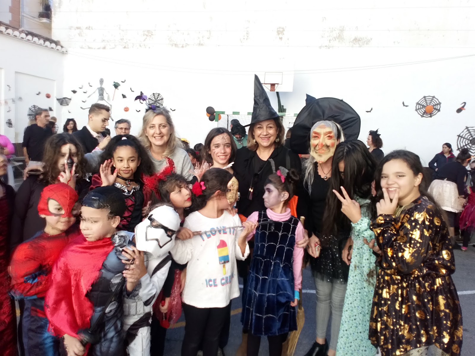 Una vez más, pudimos disfrutar de una estupenda tarde de convivencia familiar en un ambiente festivo y lúdico. El patio del cole, perfectamente decorado para la ocasión, se llenó de dulces brujitas, amables superhéroes, vampiresas, vampiros y risueños monstruos de todas las edades. Además, destacar la participación de antiguos alumnos y alumnas que, acompañados de sus familias, no quisieron perderse la fiesta.