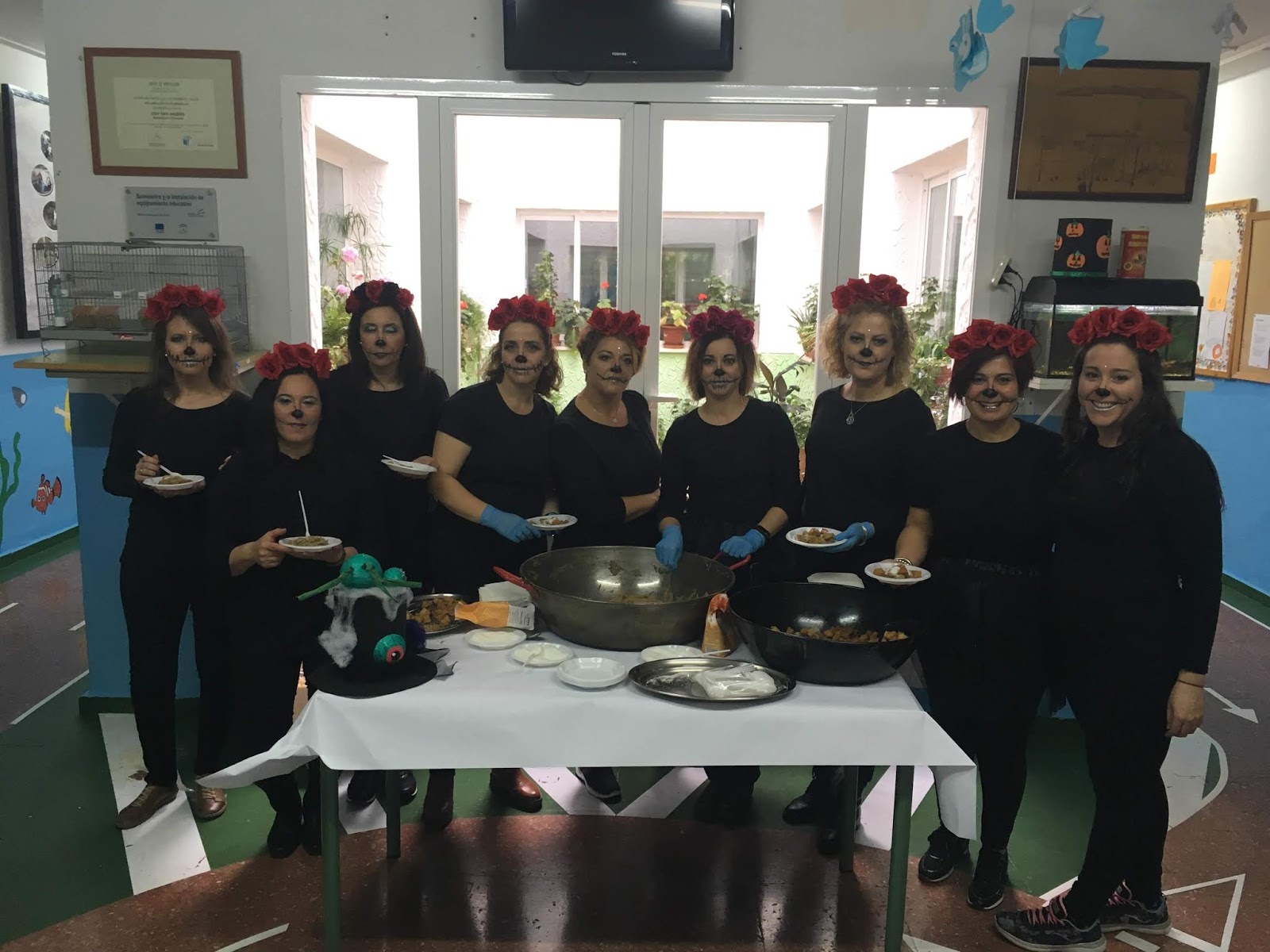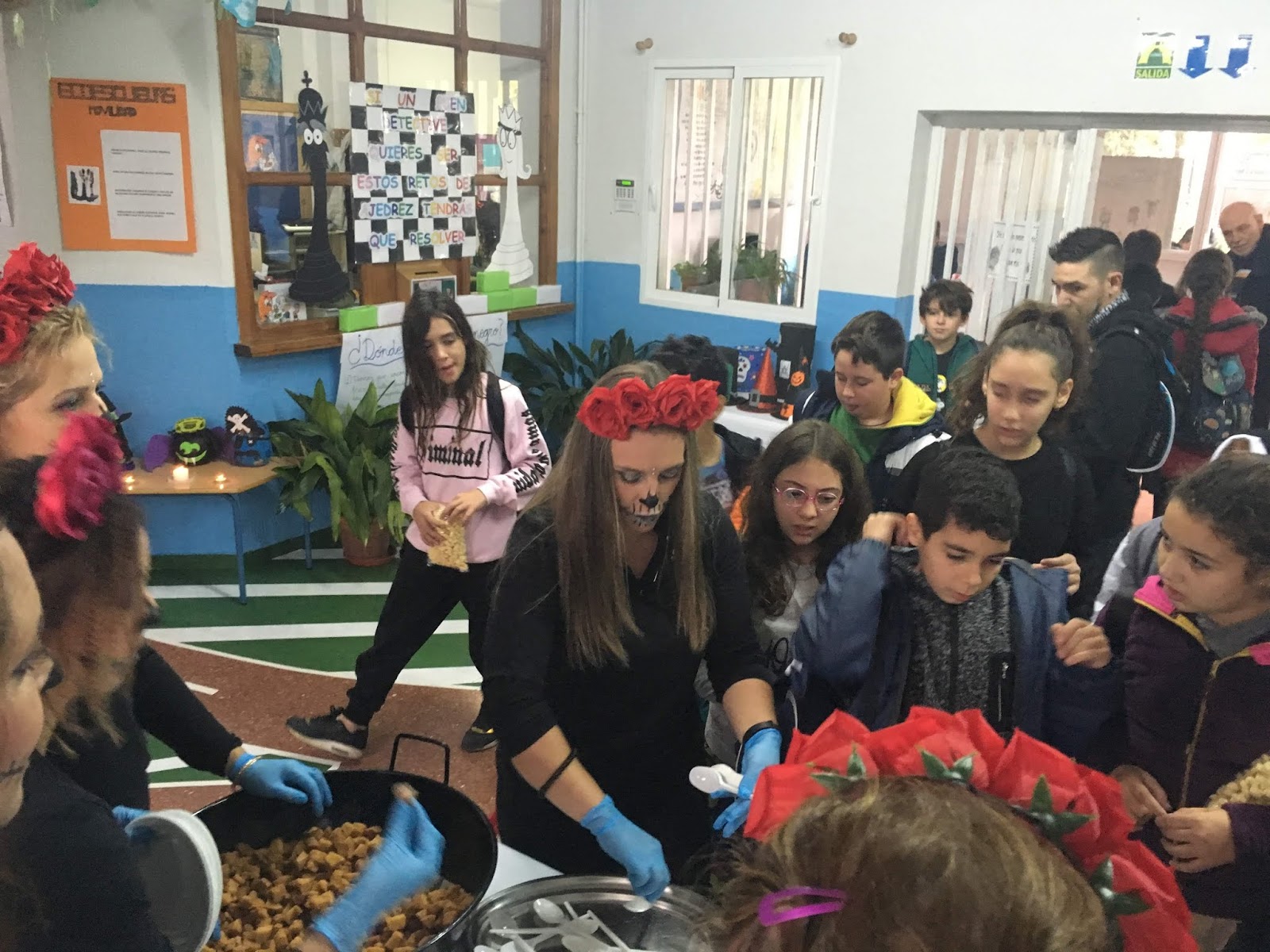 Nuestros amigos celebraban la festividad de Halloween. Creatividad y vistosidad en cuanto a la decoración y la vestimenta. Por otro lado, un grupo de madres nos obsequiaron con unas exquisitas «gachas», comida típica en estas fechas entre los montejiqueños.
