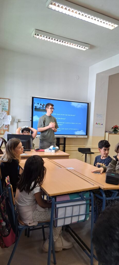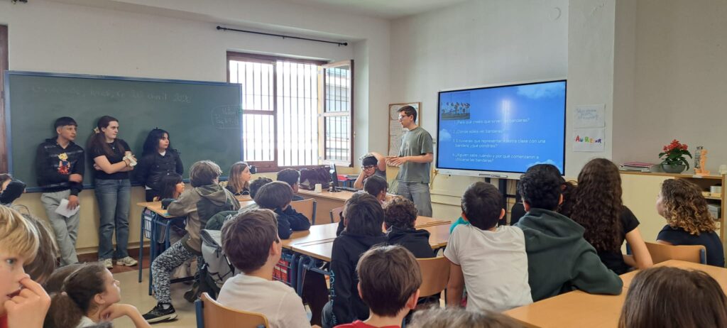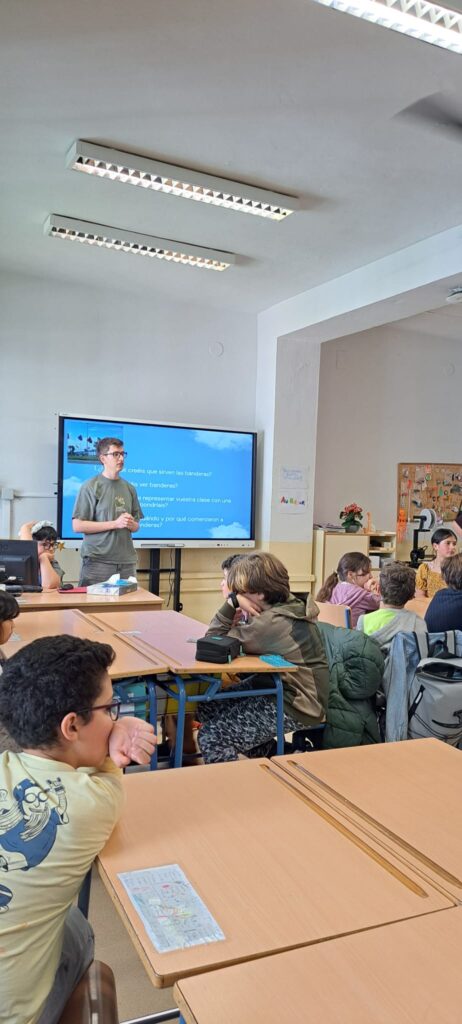 Taller impartido por nuestro colaborador en el proyecto LA ESCUELA QUE UNE, y traductor Lino, en el que hemos analizado los colores de nuestras banderas y hemos imaginado cómo sería la de nuestro colegio, nuestra calle, nuestros amigos,…. un rato divertido y lleno de curiosidades.